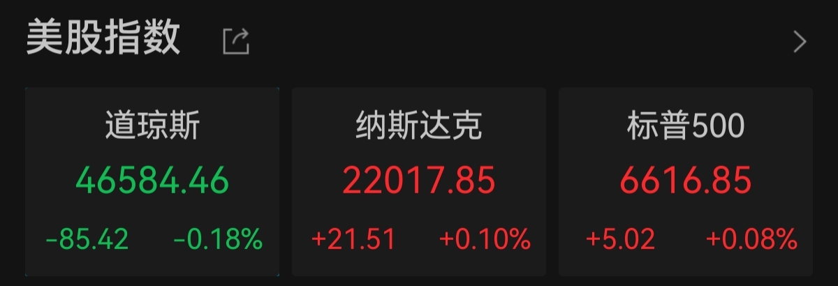 中新经纬4月8日电 好东时刻周两,好股3年夜指数涨跌没有1。停止支盘,讲指跌0.18%报46584.46面,纳指涨0.1%报22017.85面,标普500指数涨0.08%报6616.85面。